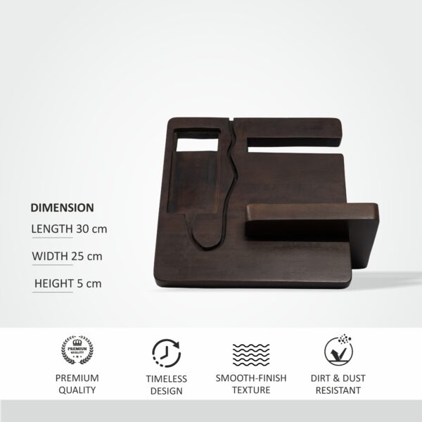 Upbeat your space with our elegant desk table organizer. Our stylish dock station is made with premium mango wood and can be a great organizer for your home or office. This universal docking station is compatible with all cell phones and tablets including iPhones, iPads, and android phones. It comes with a charging area and can also be a good watch holder. Our stylish nightstand organizer is easy to install with detachable parts. It has a beautiful walnut wood color with a smooth texture and subtle tones.